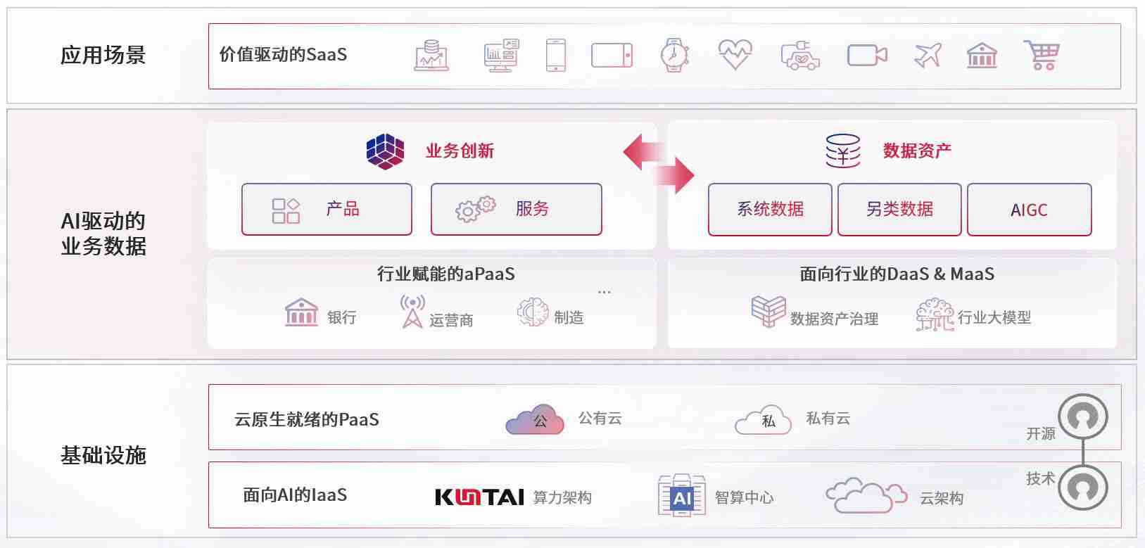 数字时代,,,,围绕企业数字化转型的关键要素,,,,UNIBET数码开创性的提出数云融合战略和技术体系框架,,着力在云原生、、数字原生、、AI原生和信创产业上架构产品和服务能力,,为处在不同数字化转型阶段的快消零售、、、汽车、、金融、、、医疗、、政企、、、教育、、、、运营商等行业客户提供泛在的敏捷IT能力和融合的数据驱动能力,,构建跨界融合创新的数字业务场景和新业务模式,,,,助力企业级客户建立面向未来的核心能力和竞争优势,,全面推动社会的数字化、、、、智能化转型升级。。